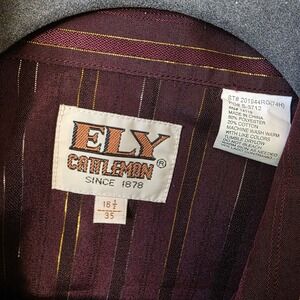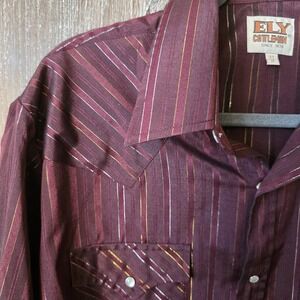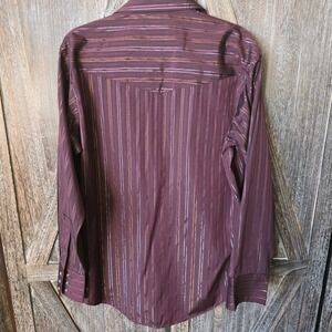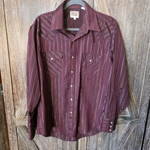 Ely Cattleman Shirt Men's 16.5/35 Burgundy Pearl Snap Metallic Striped Western
