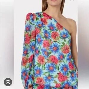 Milly Revolve NWT Emilia Painted Dahlia Print Top Size 0-2. Retails for $295.00. Ptp is 17.5”-18” and length is 23.5” shoulder side and off shoulder only 14.5”.