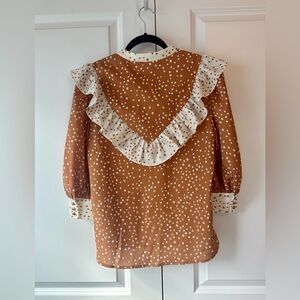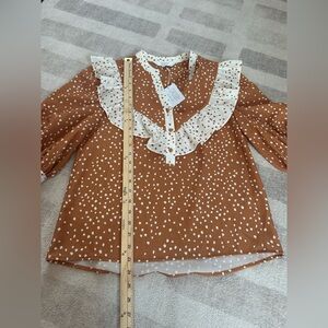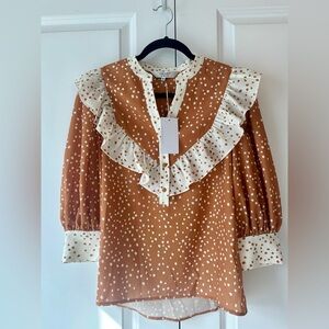 CROSBY by Mollie Burch Women’s Orange White Dot Ruffle Blouse NWT (Size XS)