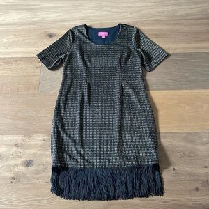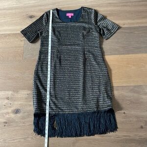 Isaac Mizrahi Live! Petite Always Isaac Lurex Fringe Hem Dress Size MP