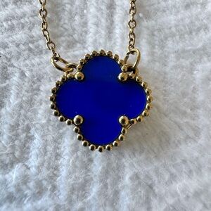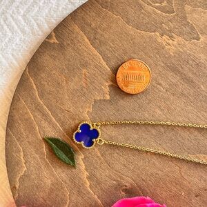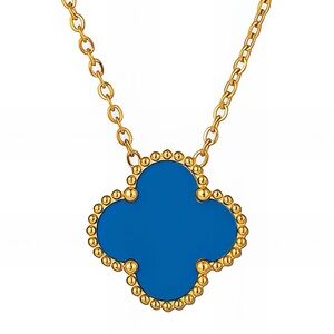 Elegant Gold and Blue Clover Pendant Necklace