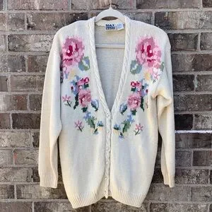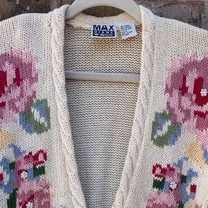 Take 50% OFF- Max Studio Cream Floral V-Neck Button-Up Cardigan, Size-S