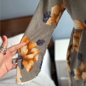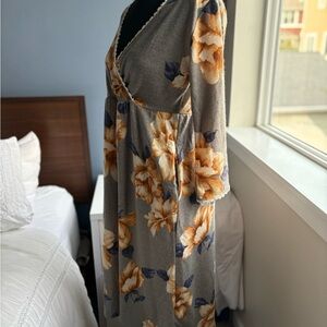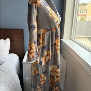 NWOT Hailey & Co. Gray Floral V-Neck 3/4 Sleeve Knee Length Dress w Pockets