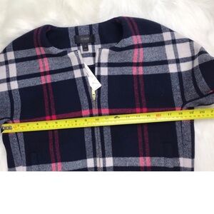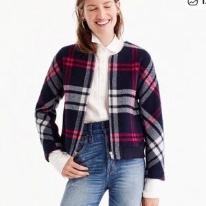 J. Crew Navy Plaid Wool Bomber Jacket with Pink Accents