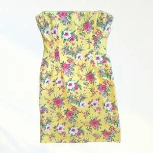 Vintage 90s y2k RALPH Lauren Hawaiian Floral Strapless Dress Yellow Pinup Medium