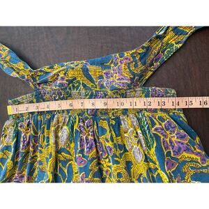 Cleobella Violette Mini Dress sold at Free People. Features a vibrant teal, mustard yellow, and purple floral print with an effortless boho silhouette.