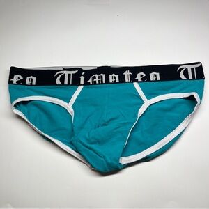 teal men's brief with white contrast trim. Supportive, low-rise fit for everyday comfort. Breathable stretch fabric for a secure feel. Stylish black branded waistband for a bold finish.