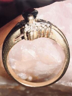 This is a pre-owned vintage item. The inner band features a 10K purity hallmark and a maker’s mark (initials V.P. or M.P.). Please note that as a vintage piece, these inner stamps show some natural wear and fading from age. The gold and gemstones have been gently cleaned and are ready to wear!