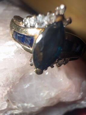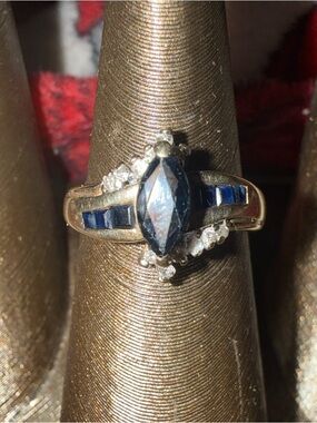 Vintage 10 karat yellow gold, Sapphire, and Diamond ring Sz 7