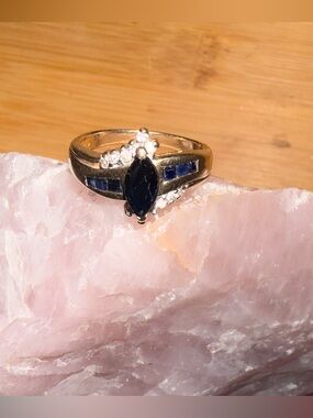 #VintageJewelry #10KGold #SapphireRing #EstateJewelry #GoldRing #BlueSapphire #DiamondAccents #VintageStyle #Size7Ring #FineJewelry #BypassRing #SeptemberBirthstone
