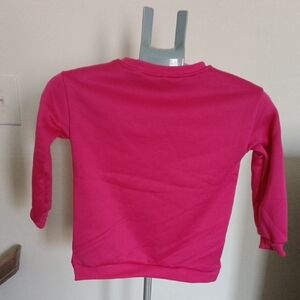 Classic kids' crewneck sweatshirt in bright pink. Soft, cozy fabric for everyday wear. Simple design pairs easily with jeans or leggings. Comfortable fit for active play.