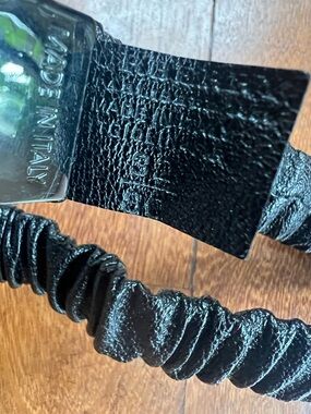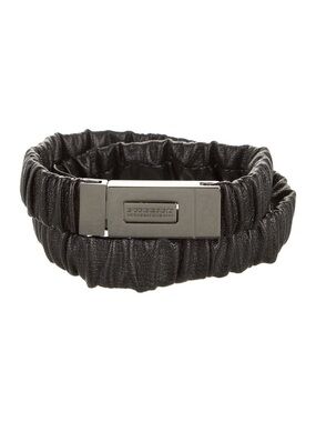 Vintage Burberry Black Gathered Leather Belt with Gunmetal Plaque Buckle