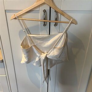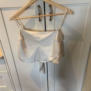 This is a cropped scarf blouse with adjustable straps, a tie back and a bias cut. It's made from Effortless Satin™ — drapey, lightweight Japanese satin with a glossy look and feel.