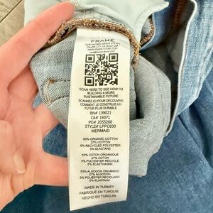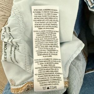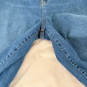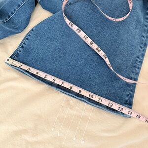 Worn only twice and in excellent condition. Size 29, high rise with lots of stretch. Super flattering fit in a medium blue wash.