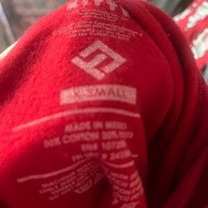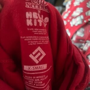 Bold red pullover featuring white Hello Kitty branding and printed details. Casual character style. Easy to wear with graphic appeal.