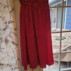 Elastic waist, pockets, and a loose, flowy romantic style. Size medium, measurements upon request. Comes from a pet friendly smoke free home.