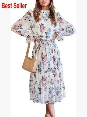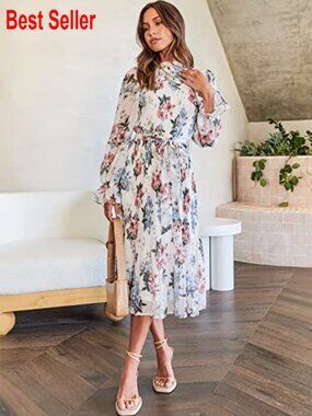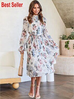 🌸 Floral Chiffon Midi Dress for Elegant Occasions