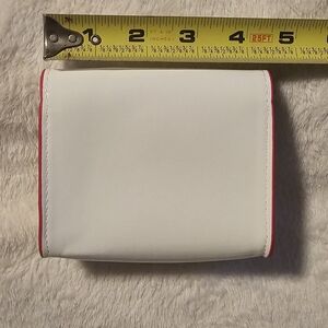 Cute Hello Kitty crossbody bag. White body with red trim and adjustable red strap featuring Hello Kitty print. Lightweight and easy to carry for everyday outings.