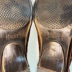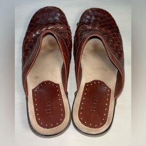 Bass Women's Size 8M Brown Handwoven Leather Slip On Clogs. 2 3/4" Heel Height.