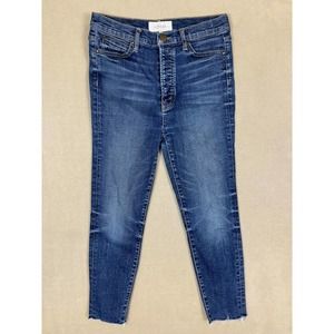The Great The Dude Slim Jeans Women's 24 Cropped Raw Hem High Rise Button Fly Blue