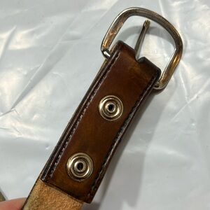 Vintage Brown Leather Belt with Black Heart Motif and Brass Initials HFP