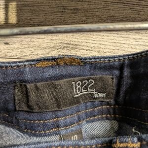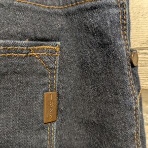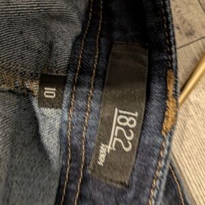 Classic denim shorts with subtle whiskering. Five-pocket style with contrast stitching. Button and zipper closure. Comfortable, relaxed fit.