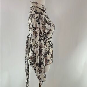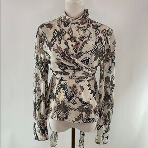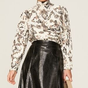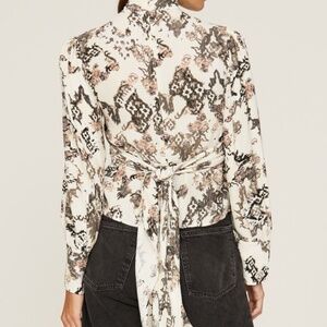 Elevate your silhouette with this stunning IRO top—featuring a double-wrapped waist and abstract print that effortlessly sculpts and shines with sophistication.
