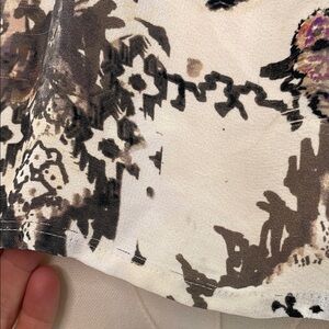 Several runs and thread pulls on the bottom half of the blouse. Please see pictures for clarity.