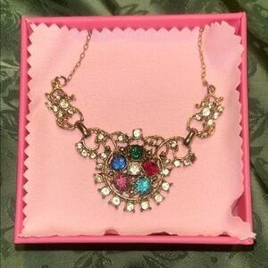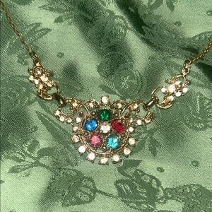 This stunning necklace features a blend of vibrant gemstones set in a gold-tone design. Perfect for adding a touch of elegance to any outfit.