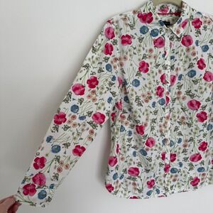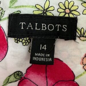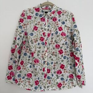 Talbots Women's Floral Button Down Shirt 14 Pink Blue Spring Layer 100% Cotton