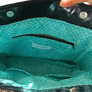 Double sided handles (1 side is glitter vinyl and otherside is fabric matching the lining)