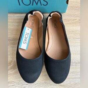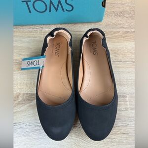 New with tags and box TOMS Judith ballet flats. Elastic at ankle back. Round toe. Rubber sole. Essential wardrobe basics piece!