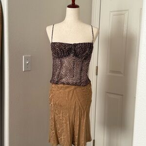 Sheer leopard print bustier cami with thin straps. Structured cups and feminine silhouette. Lightweight and breathable. Great for layering or on its own.