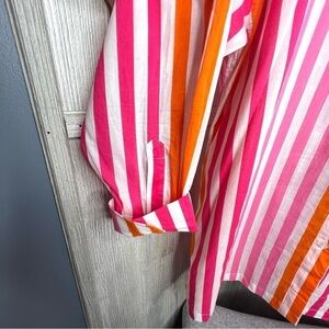 Beach Riot Striped Oversized Shirt or the Perfect Beach Cover Up. Bright Sunset Striped. Tag Shows PL assuming Petite Large but top is very oversized. Approx measurements pit to pit 26”, Length from Shoulder to Bottom 33.5”. Great Condition 🚭
