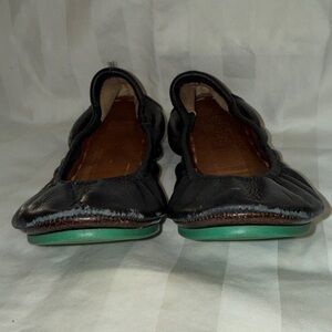Tieks Black Leather Ballet Flats with Teal Heel Tab Accent