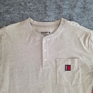 NWT Wrangler Riggs Workwear Henley Shirt Mens Large Tan Relaxed Fit Long Sleeve