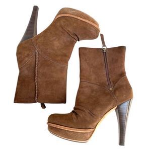 UGG Australia Bianka Suede Water-Resistant Heeled Boots Brown Size 7
