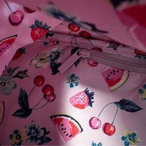 VERA BRADLEY Pink Cherry XL Front Pocket Straw Tote Hidden Bottom Pocket Pink Cherry Embroidery