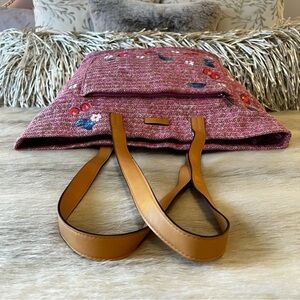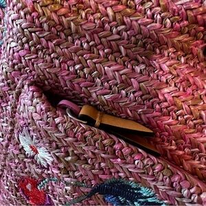 VERA BRADLEY Pink Cherry XL Front Pocket Straw Tote Hidden Bottom Embroidery
