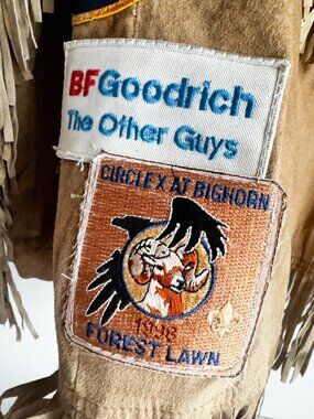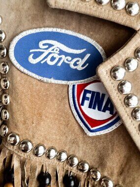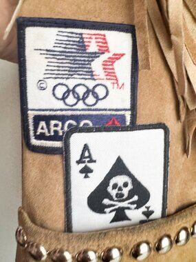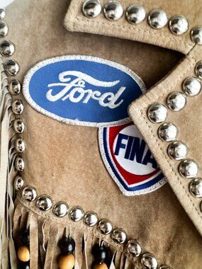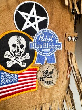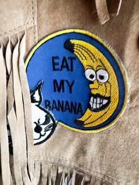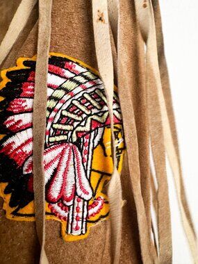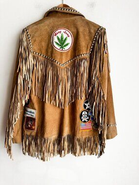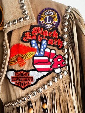 Vintage Light Beige Fringe Suede Jacket with Patches S