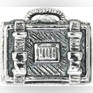 NWT Chamilia Steamer Trunk Locket. 2010-3237. Pack your bags in anticipation for the journey of a lifetime. The .925 sterling silver trunk symbolizes a passion for travel. This bead opens to reveal a passport and sandals! Sold with gift box.