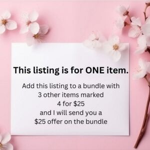 Buy alone, or Bundle this item with 3 other items marked 💥4 for $25💥 for some major savings! Simply add 4 items marked 💥4 for $25💥 to a bundle and send a $25 offer, and I will accept!