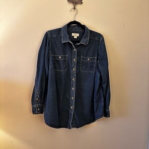 Liz Claiborne | Dark Blue Denim Button-Down Shirt
