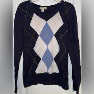 St. John’s Bay Y2K argyle sweater in navy, white, and light blue