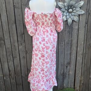 Embrace elegance with this stunning floral maxi dress. The pink floral design adds a touch of charm, perfect for any occasion.