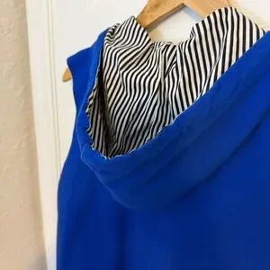 Mandal Bay Full Zip Sleeveless Vest Blue Embroidered Hooded Vest 100% Cotton SP
