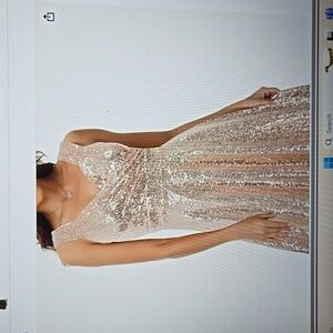 Grace Karin Rose Gold Sequin Dress Sleeveless Vneck sparkly glitter Small NEW