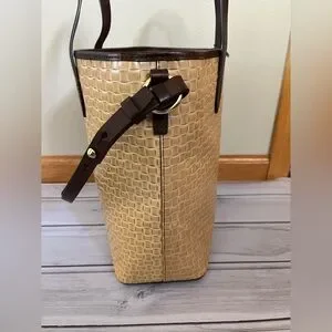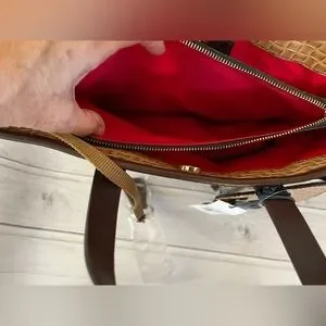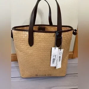 New Dooney & Bourke Lilliana natural brown woven leather strap handle tote purse