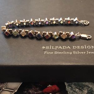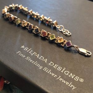 Rare Vintage Silpada Sterling Silver and Semi-Precious Stone Tennis Bracelet B0948. Features amethyst, citrine, peridot, garnet and Iolite stones. Measures 7 1/2” long. A rare find!
