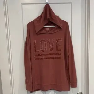 Cozy hooded pullover with large LOVE graphic Relaxed silhouette for easy wear.